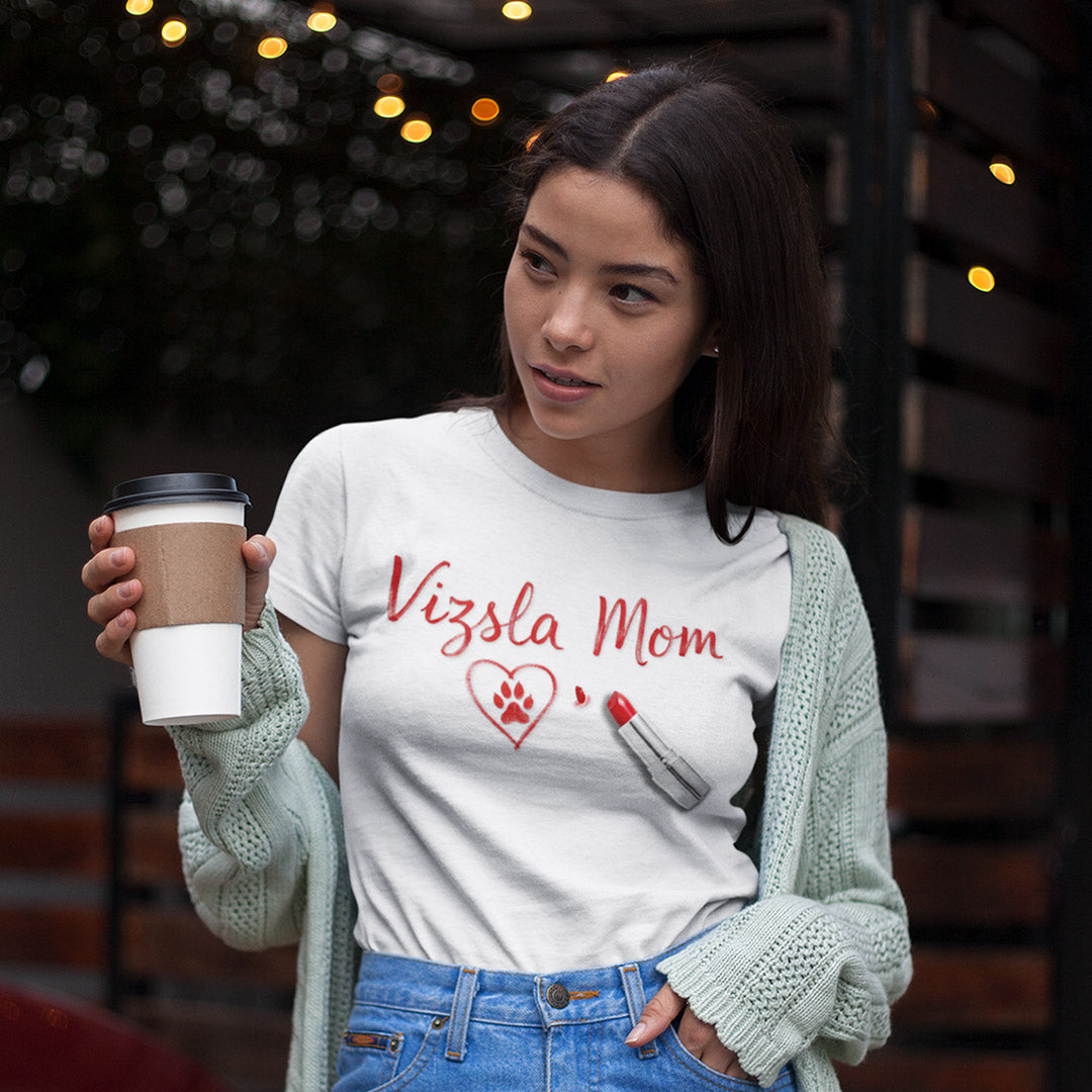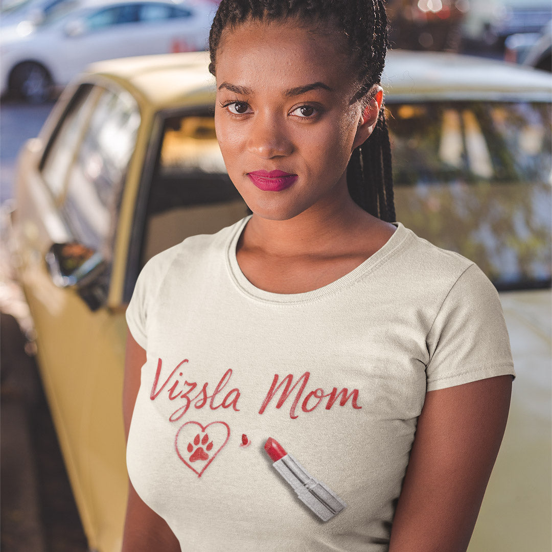 This t-shirt isn't just clothing; it's a declaration of your special bond. It’s a celebration of the unique joy, loyalty, and sometimes dramatic antics that only a Vizsla can bring into your life. The combination of bold lettering, the iconic lipstick element, and the heartfelt paw print logo creates a design that is both stylish and deeply meaningful. It also makes an exceptional gift for any Vizsla Mom in your life, perfect for birthdays, Mother's Day, or just because. Show the world that you're a proud Vizsla Mom, through and through!