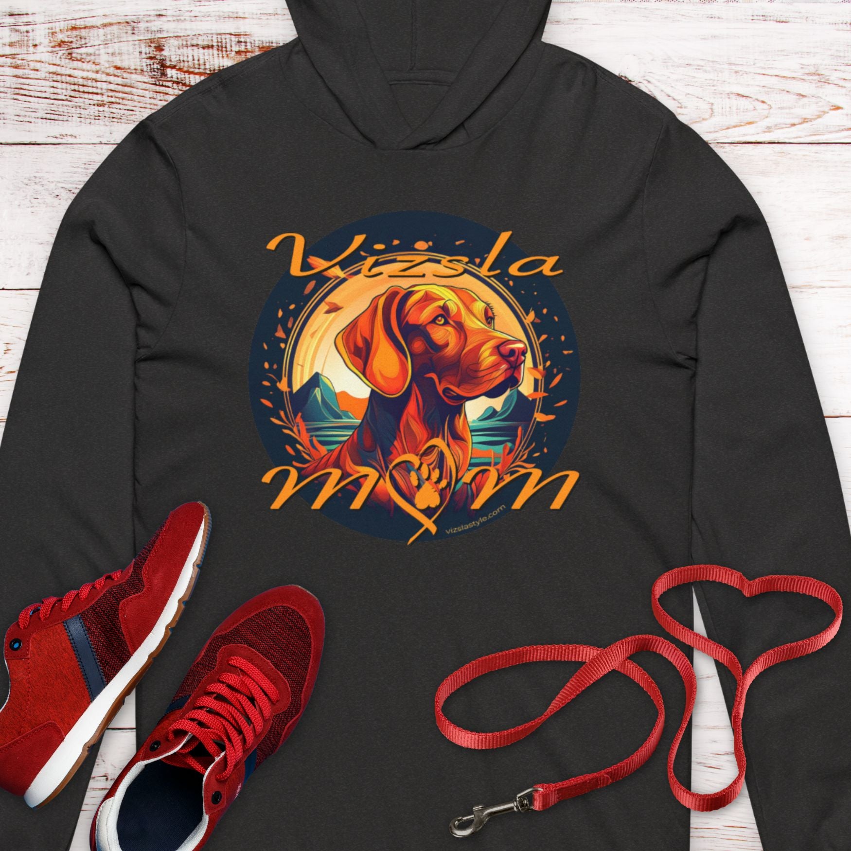 This stunning Vizsla hoodie shows the incredible beauty of the Vizsla, but also brings all of the fall colors to the forefront & states loud and proud that you are a "Vizsla Mom".