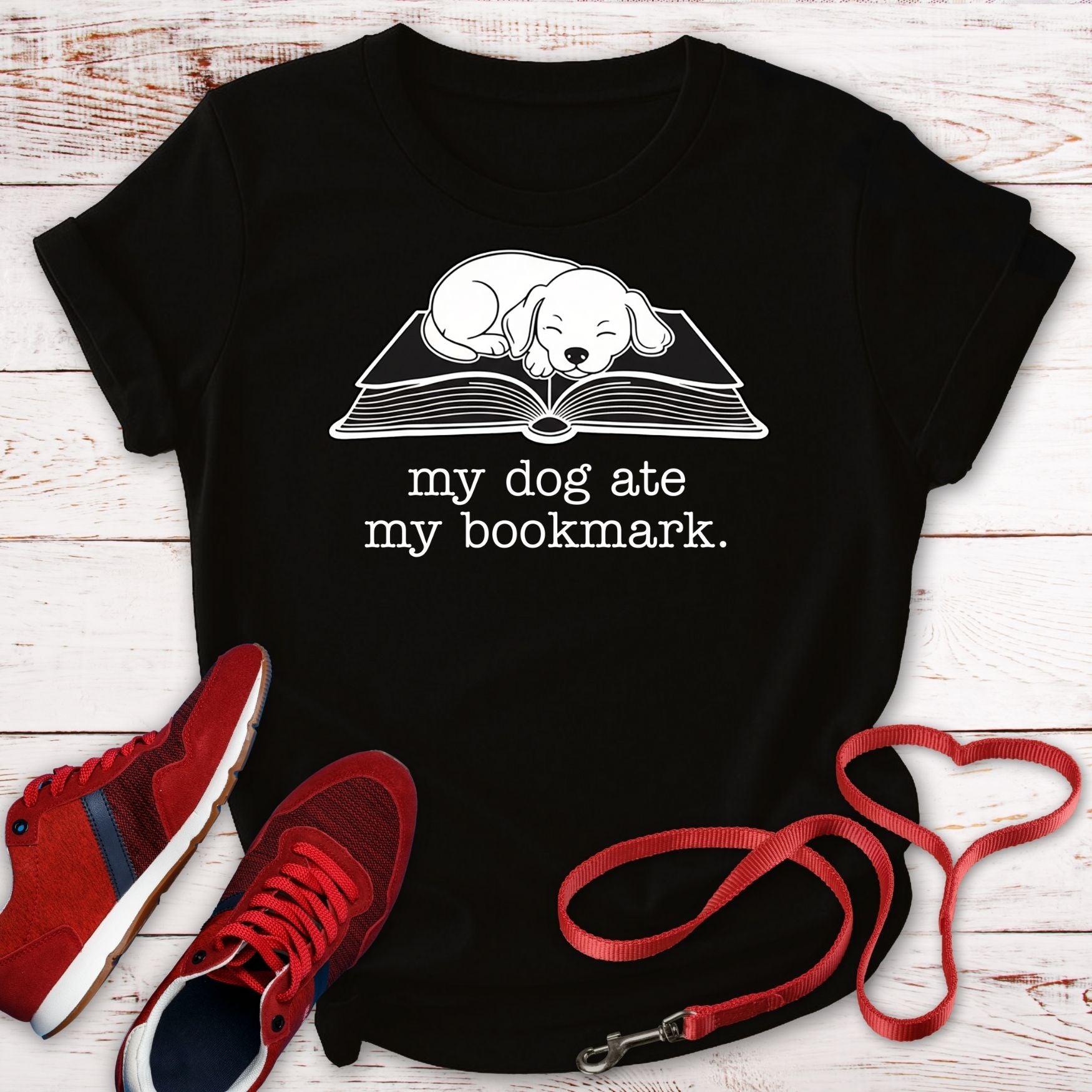 This T-shirt is more than just comfortable apparel; it’s a relatable confession and a celebration of dog ownership. It’s for anyone who knows the frustration of a chewed-up accessory, quickly forgotten the moment you look at that sweet, sleeping face. This unique and charming design also makes an excellent, thoughtful gift for any dog owner, librarian, or book club member who appreciates a good laugh. Let the world know exactly what happened to your bookmark!