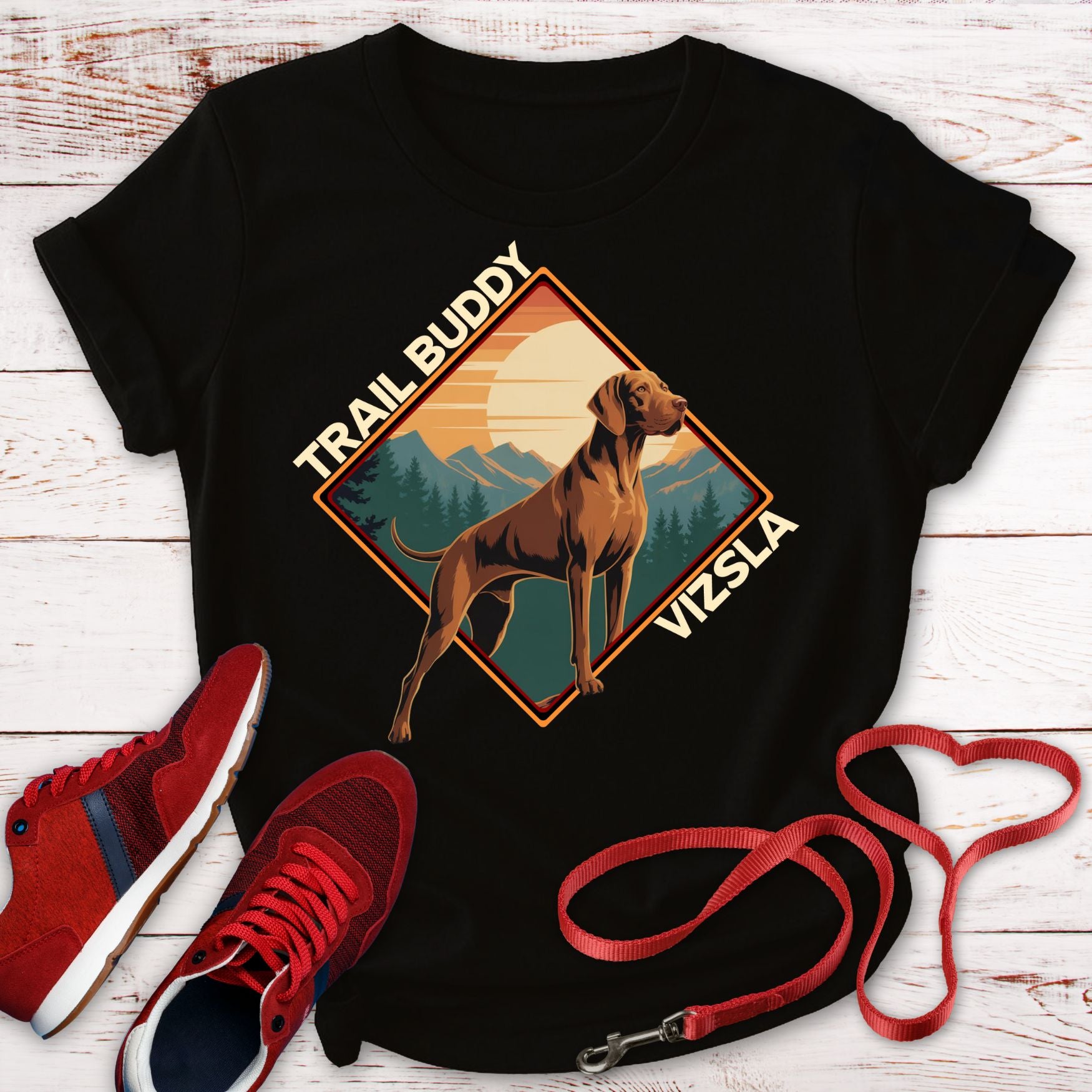 This T-shirt is more than just clothing; it’s a tribute to the unwavering stamina, intelligence, and companionship that makes the Vizsla an unmatched adventure dog. The image beautifully conveys the bond forged on long journeys, where both human and dog rely on each other. It’s a perfect way to show the world that when you head out, your best Trail Buddy is always by your side. This shirt also makes an excellent, thoughtful gift for any dedicated Vizsla owner or hiking enthusiast!