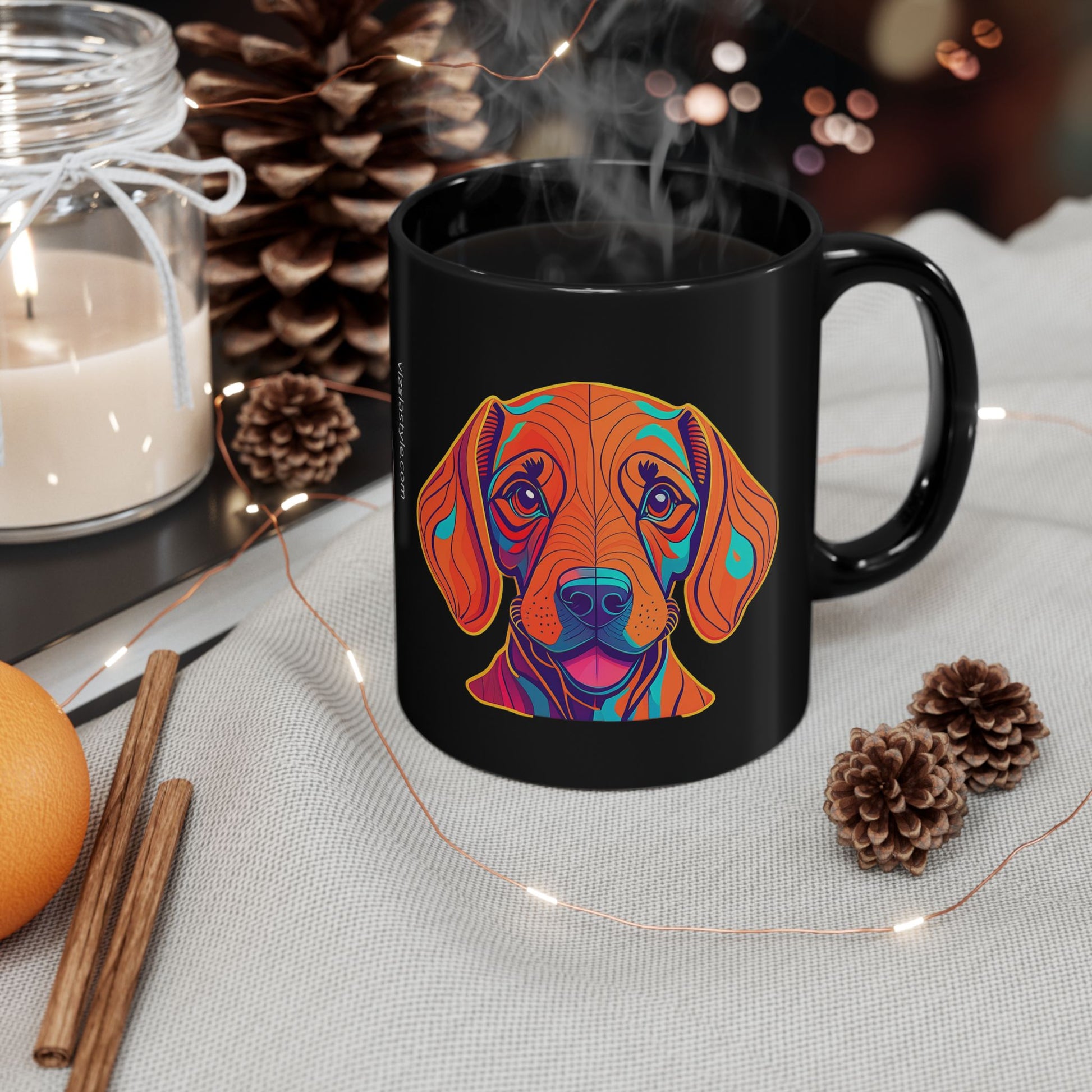 This adorable, "Vizsla Style Logo with Vizsla Puppy" sturdy black ceramic mug is stunning in its simplicity, with a beautiful Vizsla puppy that show's your fun side of our dogs.