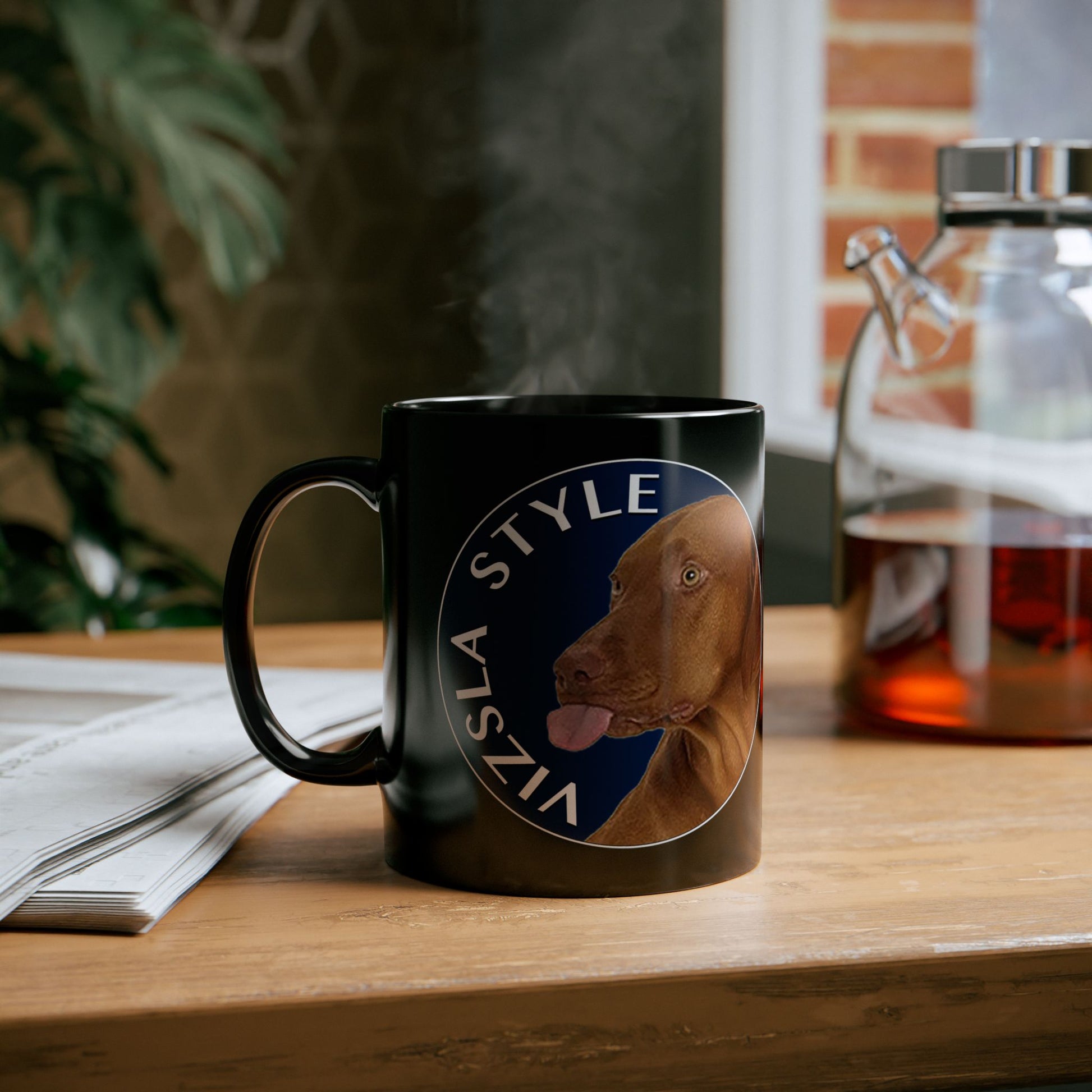 Vizsla Style Logo with Vizsla Puppy - Hungarian Vizsla Black Mug